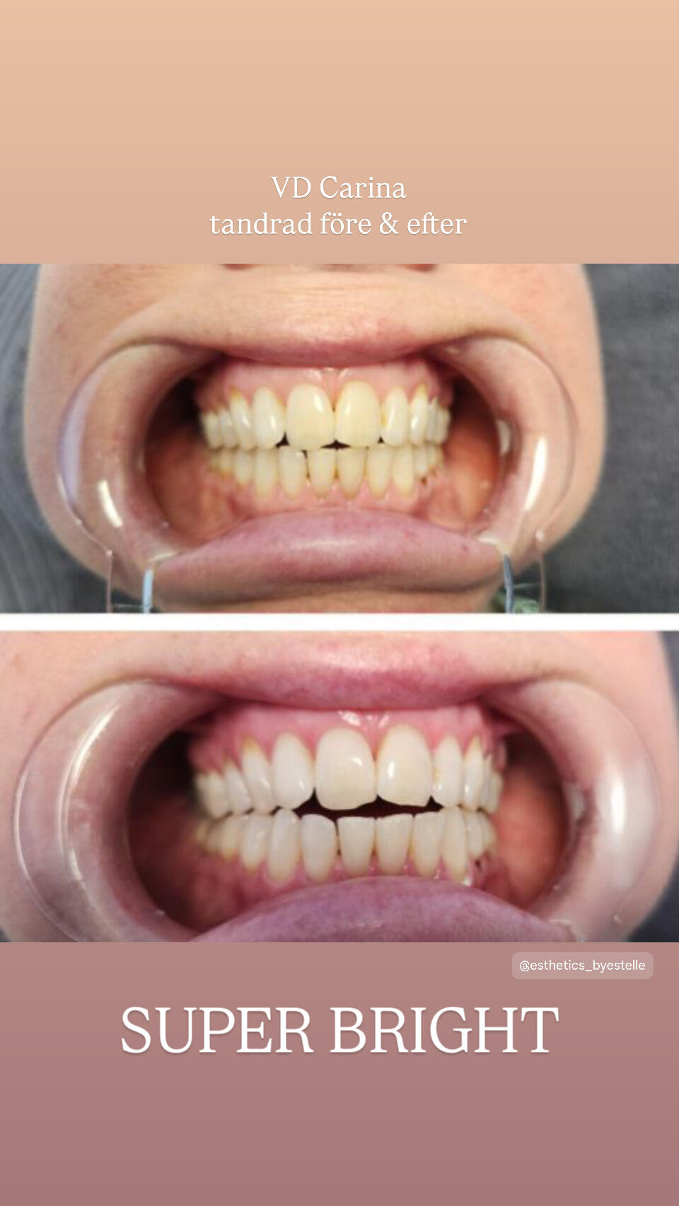 Med Super Bright+ , vår estetiska tandblekning, kan du på bara 45 minuter bli av med tråkiga missfärgningar.